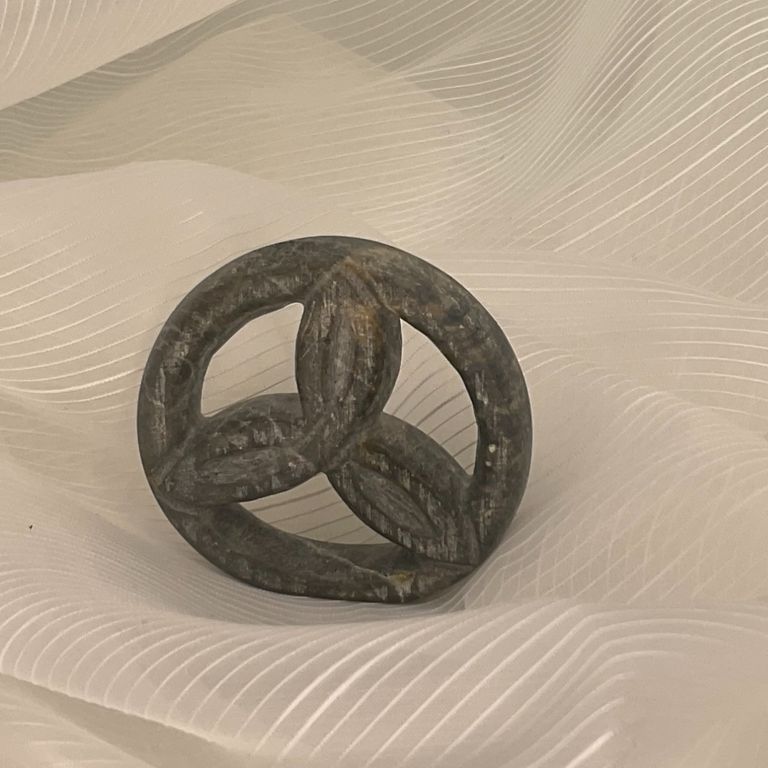 handgeschnitzter blau grauer Speckstein, Ø 6 cm, 1,2 cm Stärke